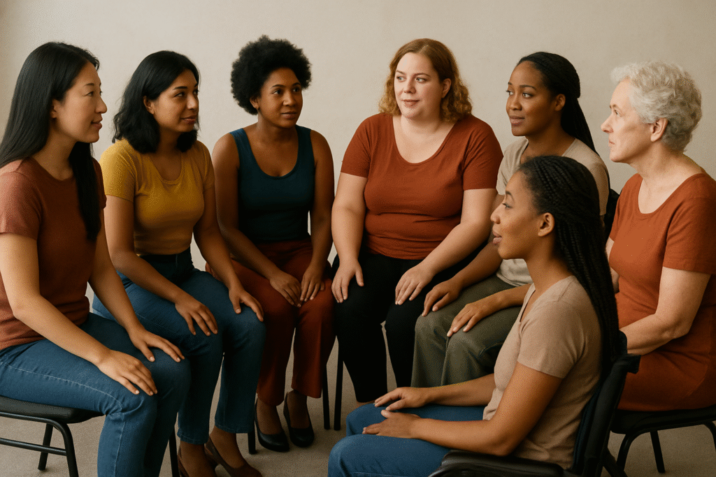 Ao ouvir as histórias de outras mulheres, as participantes percebem que não estão sozinhas em suas lutas, o que promove um sentimento de pertencimento e aceitação